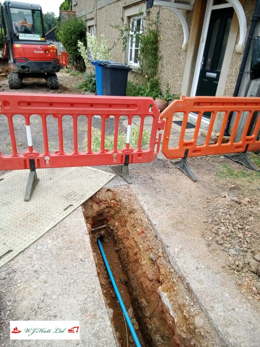 Thrust Moling Thrust Moling Using the thrust mole enables us to tunnel under roads, concrete, and paved areas with small access pits only every 12m. It keeps roads open, avoids lengthy excavations and allows damaged sections of pipe to be bypassed efficiently. Thrust moling under a trackway One from the archives! A very efficient way to cross roads We only need to excavate a small hole rather than dig up the whole driveway Not having to close roads is a huge advantage Thrust moling allows us to lessen disruption... ...and retain access routes A thrust mole run underneath a campsite plot No digging up paths required to install pipe Thrust moling with a view Our thrust mole next to the manufacturer's image